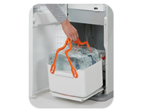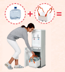 ボトルのセットを簡単で持ちやすくし、しかも正確に行うことができるように開発された"ボトルバスケット"方式。女性の方でも簡単に水の設置ができます。※Smartプラスでの仕様になります。