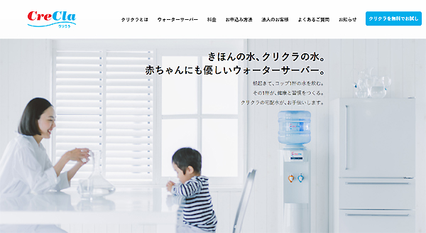 ニフティネクサス株式会社調べ「宅配水に関する調査」で、9年連続お客様満足度NO.1を獲得。「たまひよ赤ちゃんグッズ大賞 2020」で、RO水ウォーターサーバー部門第1位を受賞。産院で選ばれているウォーターサーバー「産院利用数No.1」と数々の実績を誇っているクリクラ。